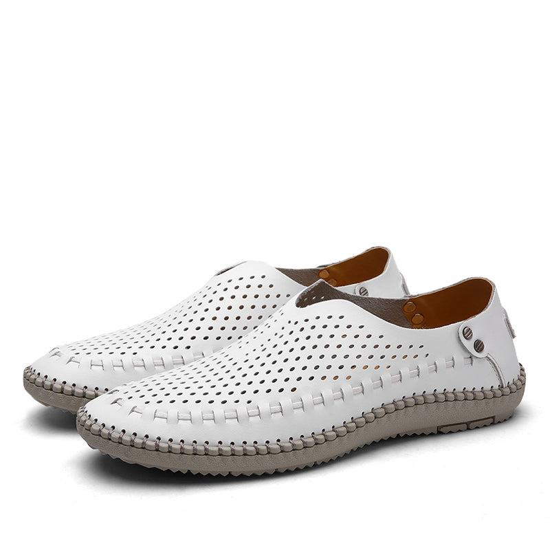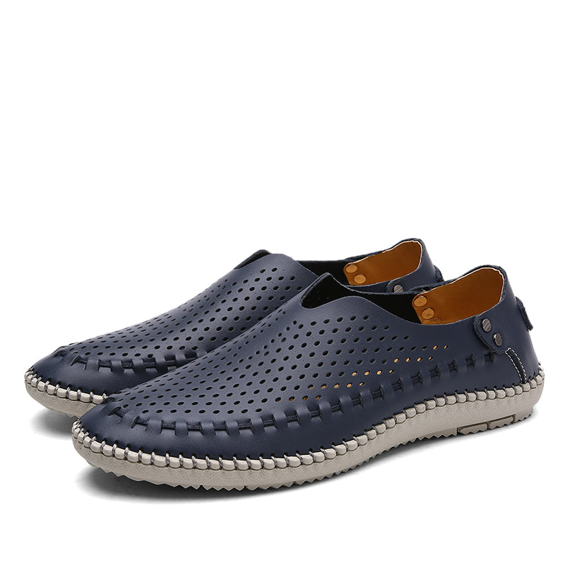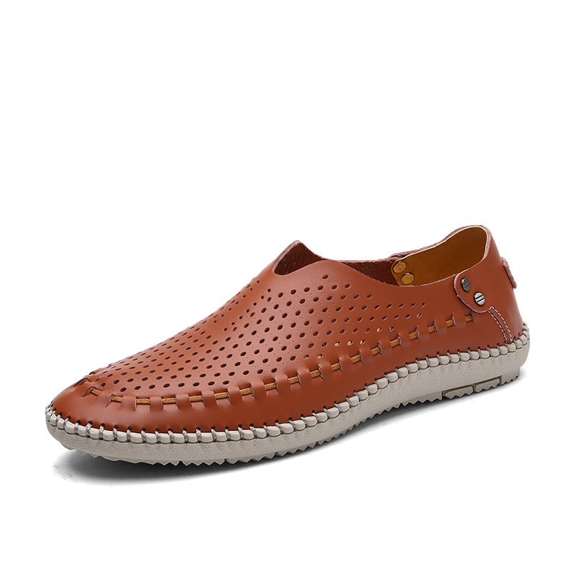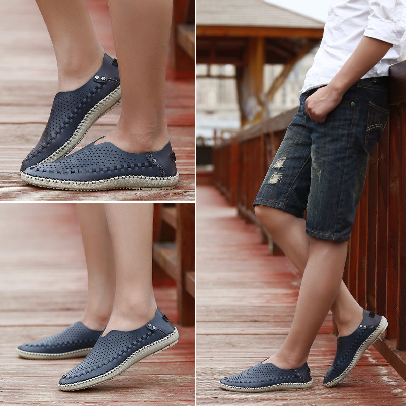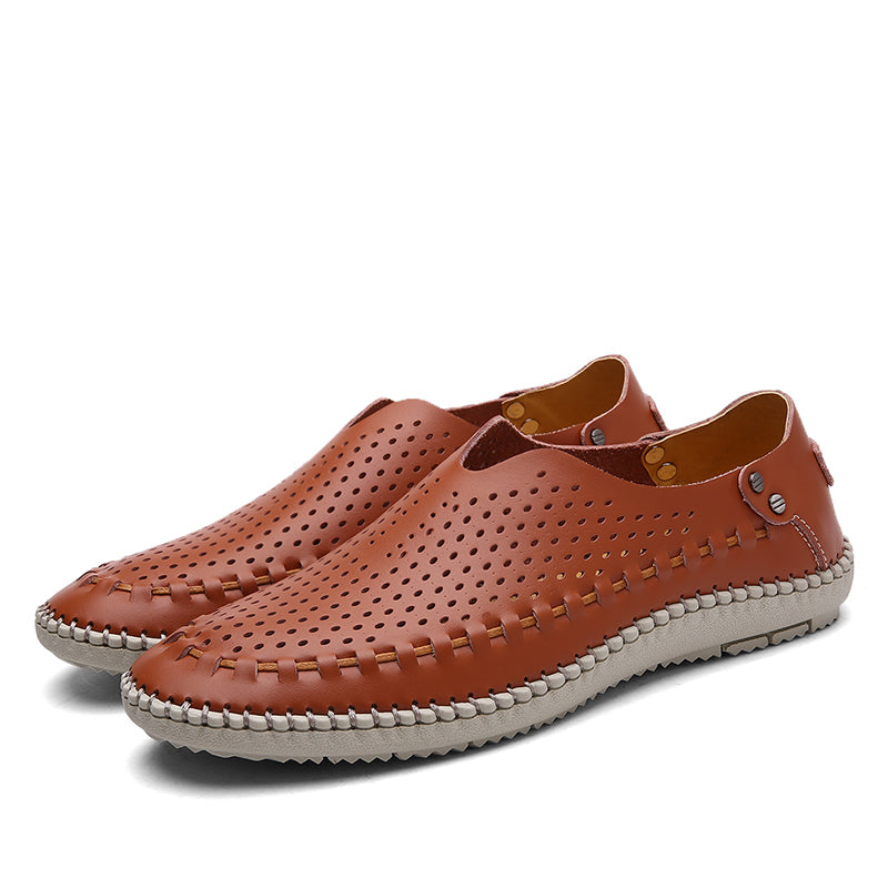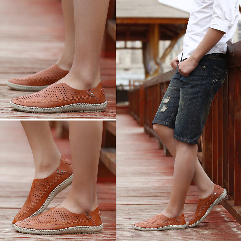 Men's Casual Handmade Leather Loafer Shoes Breathable Hole Slip On Driver Moccasins Hollow