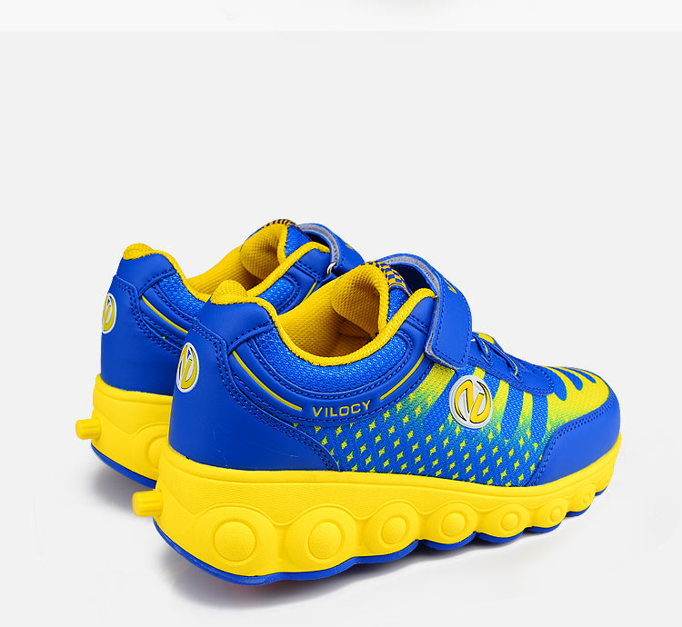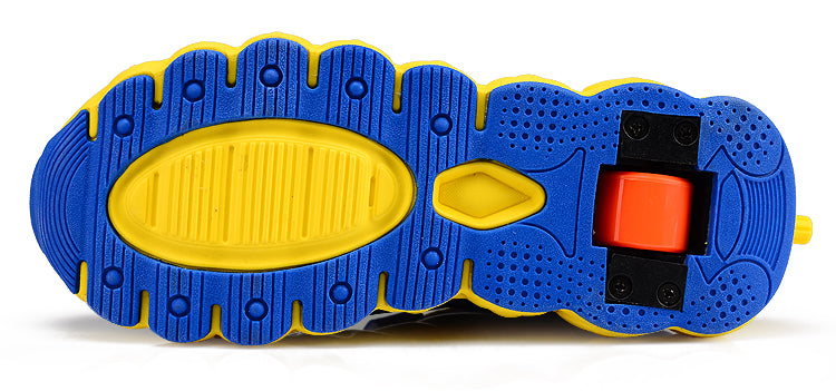 These awesome roller shoes let kids switch between walking and rolling in seconds! he eye-catching blue & yellow color combo makes them stand out, so your child will love showing them off at school or the park!