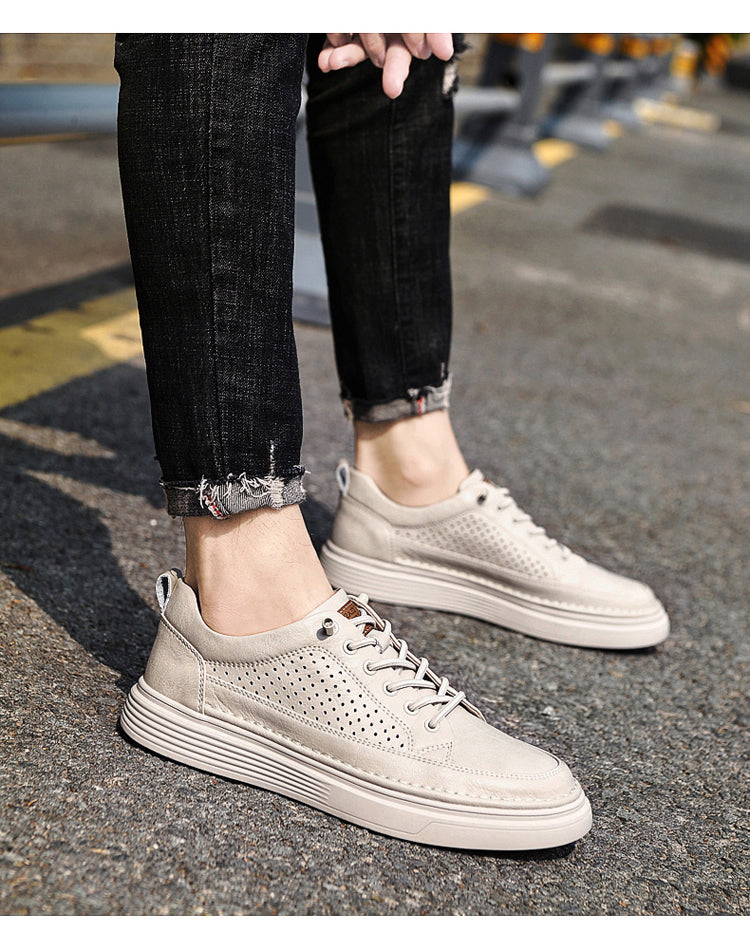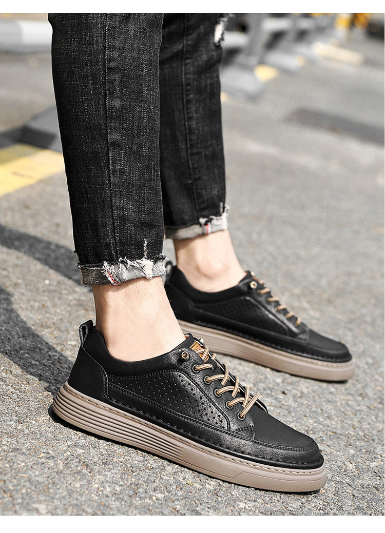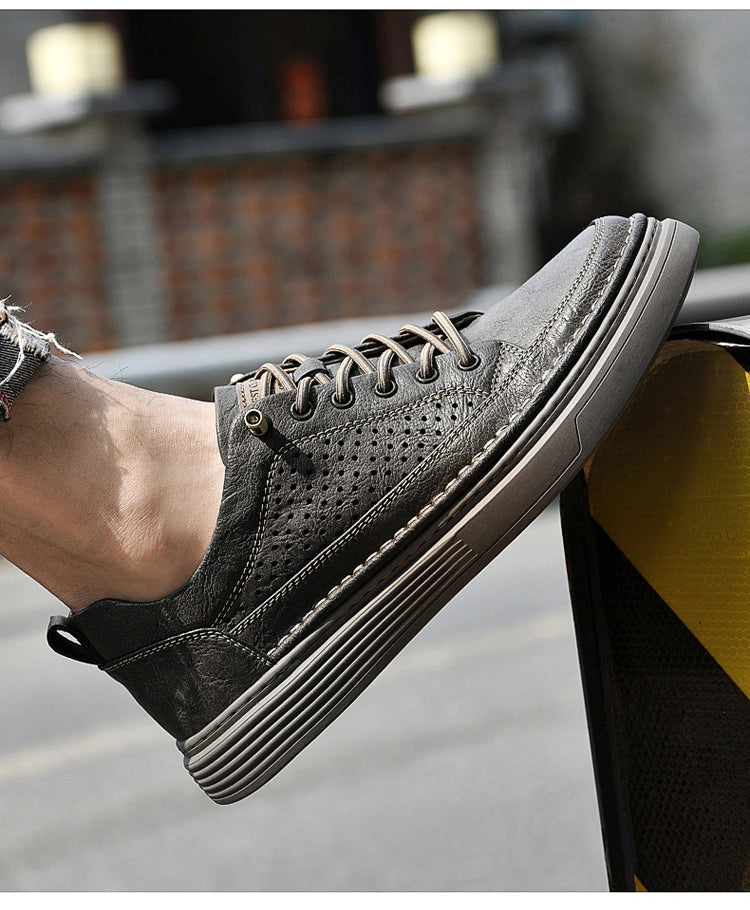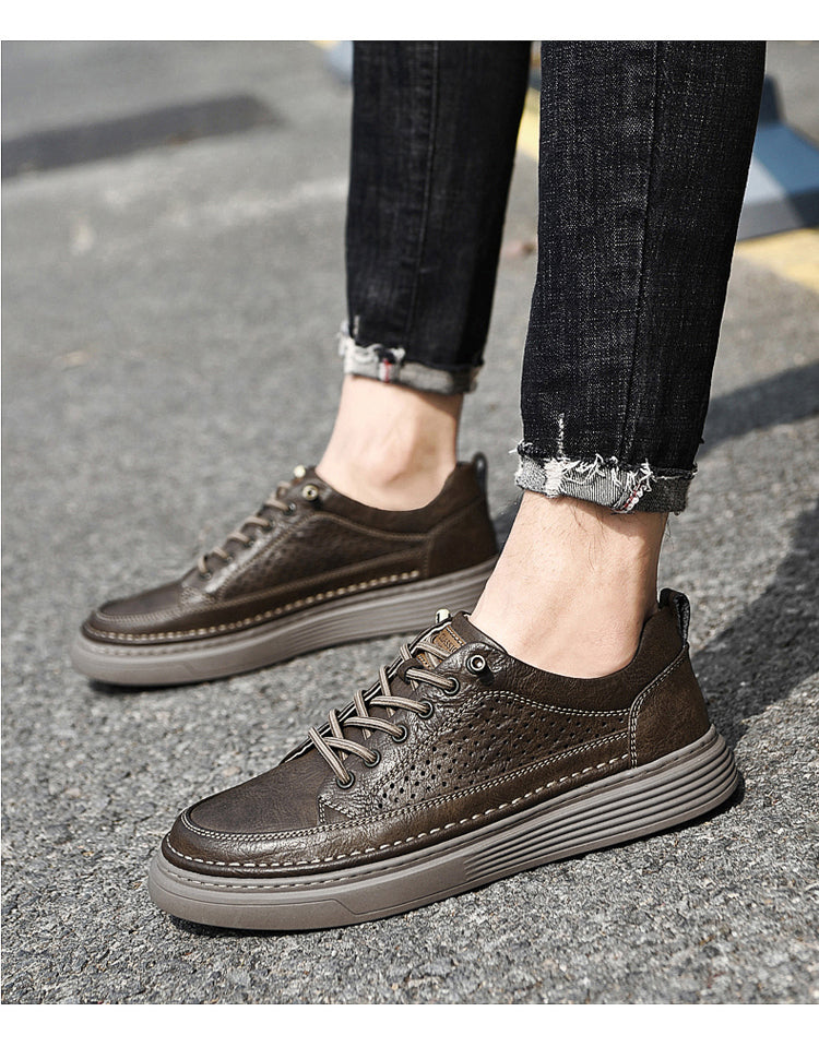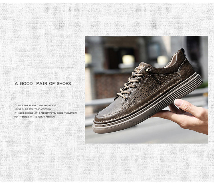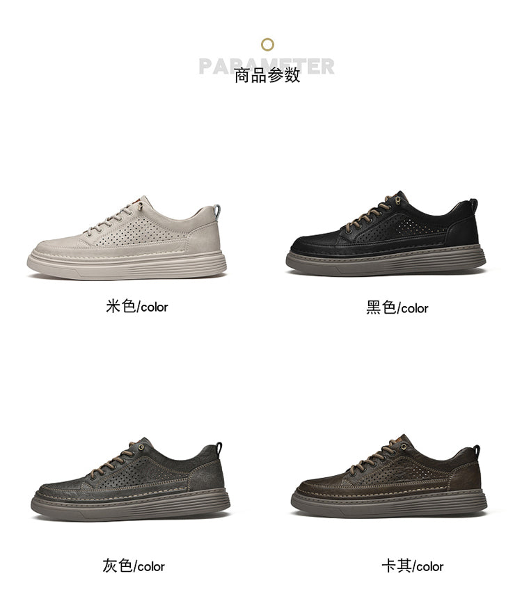 Men's Casual Board Shoes Leather Oxford Breathable Holes Comfortable Breathable Lightweight Lace Up Fashion Sneakers