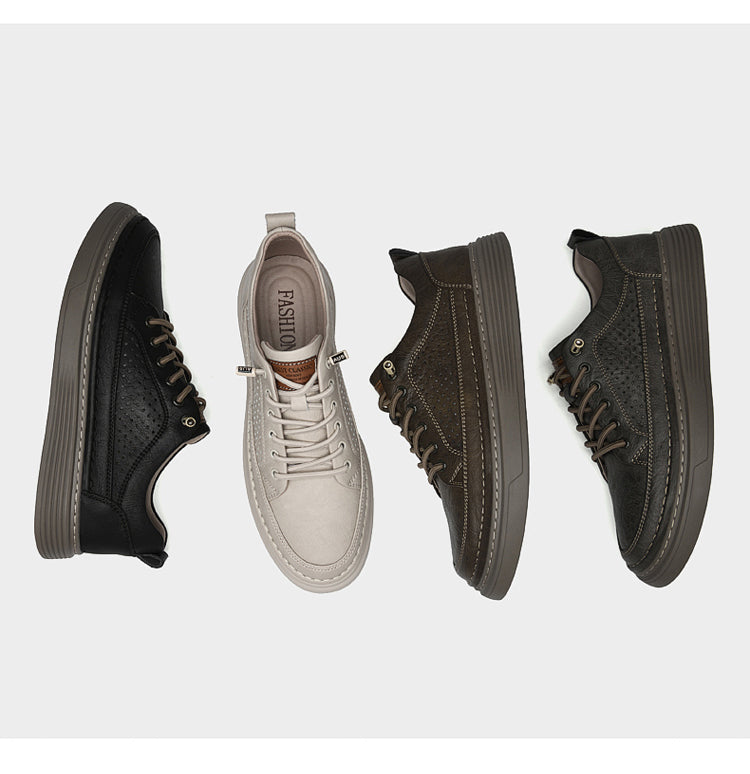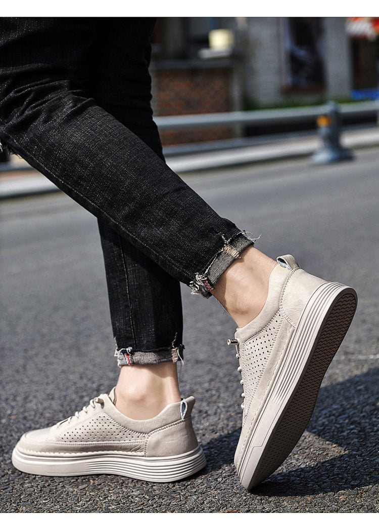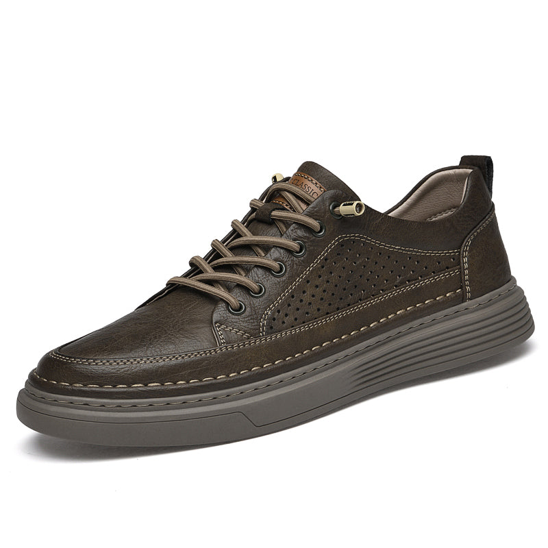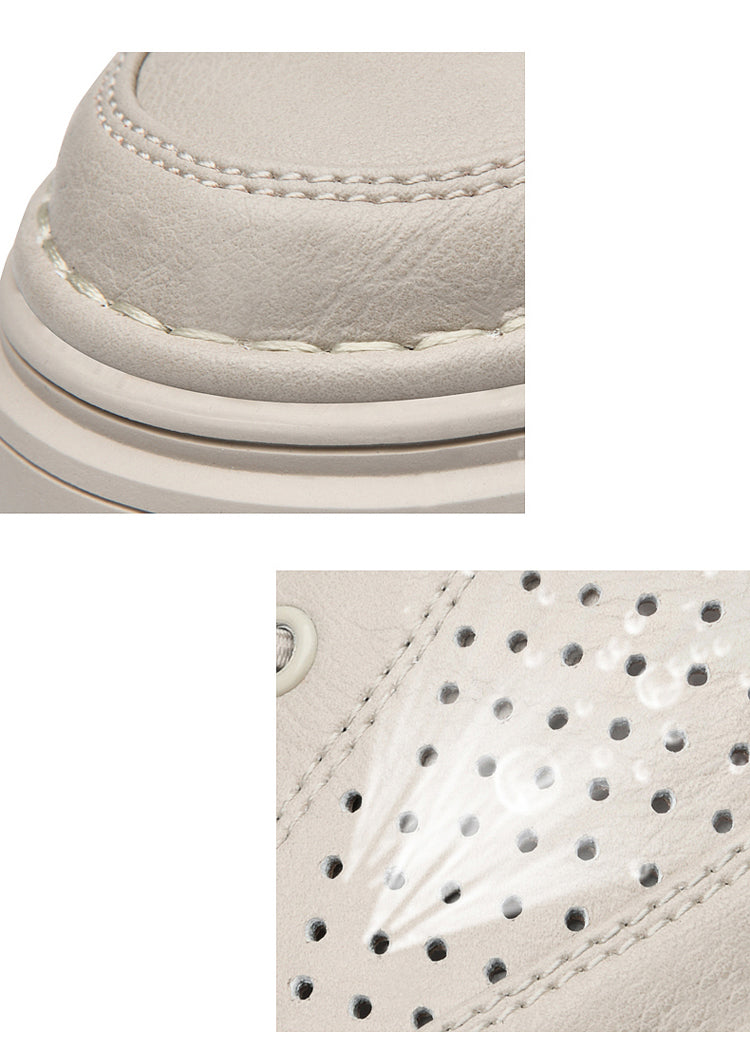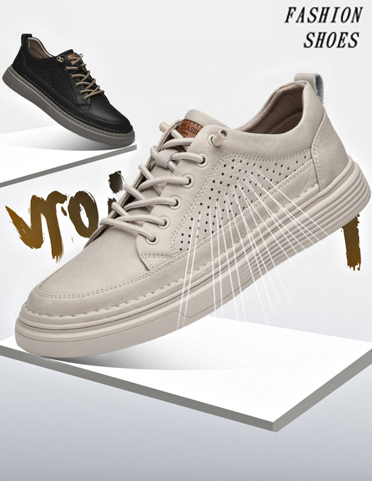 Men's Casual Board Shoes Leather Oxford Breathable Holes Comfortable Breathable Lightweight Lace Up Fashion Sneakers