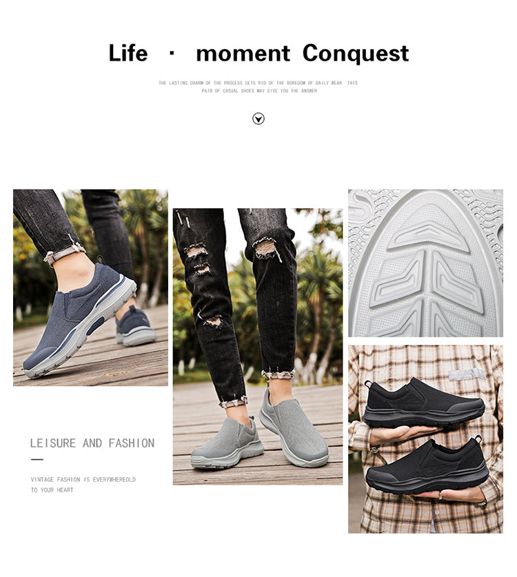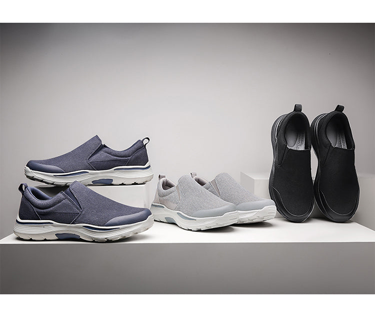 Men's Casual Thick Bottom Heightened Canvas Walking Shoes Slip On Loafers Comfortable Breathable Lightweight Sneakers