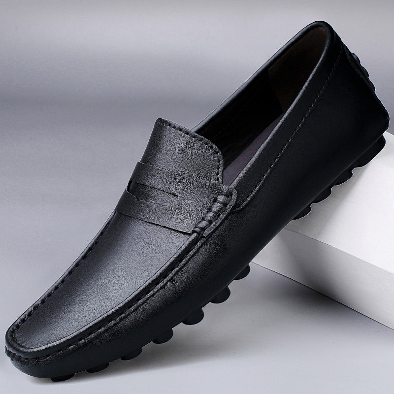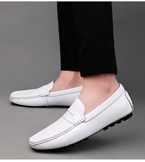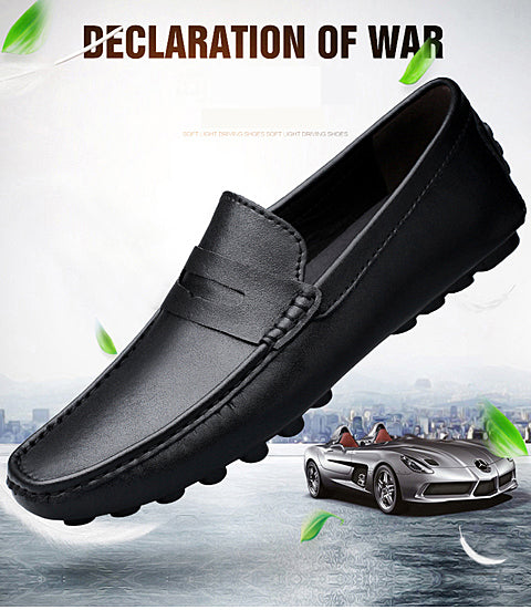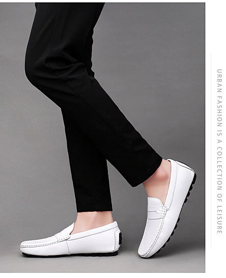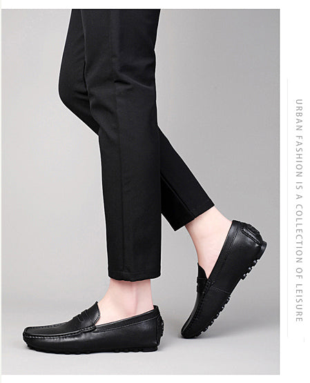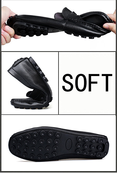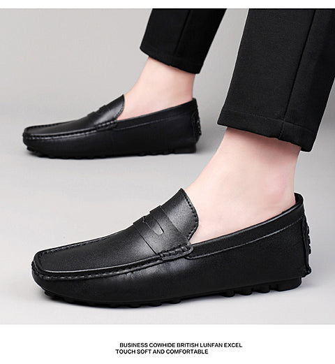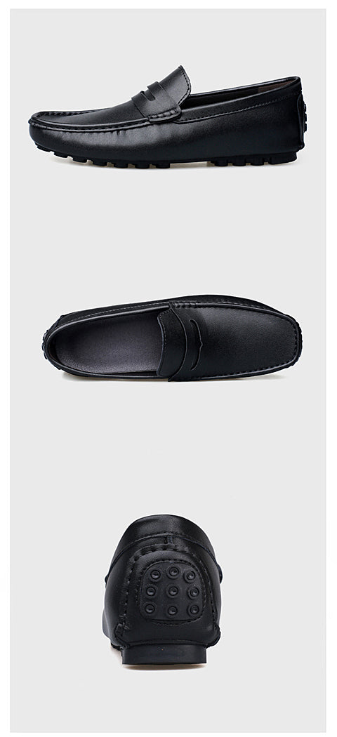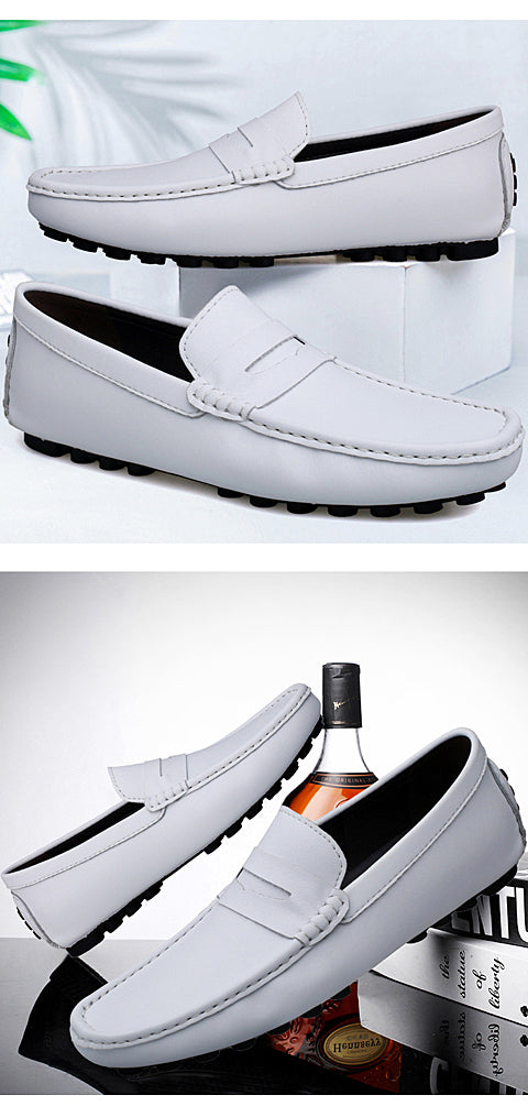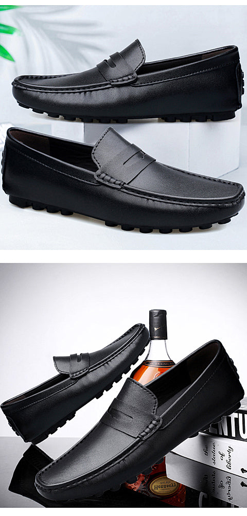 Men's Genuine Leather Shoes Casual Heightening Slip On Loafers Breathable Lightweight Flats Driving Shoes Fashion Slipper