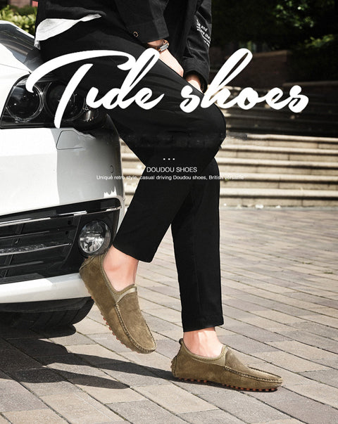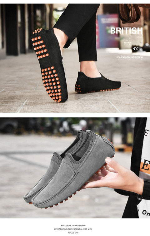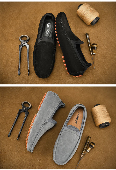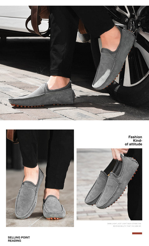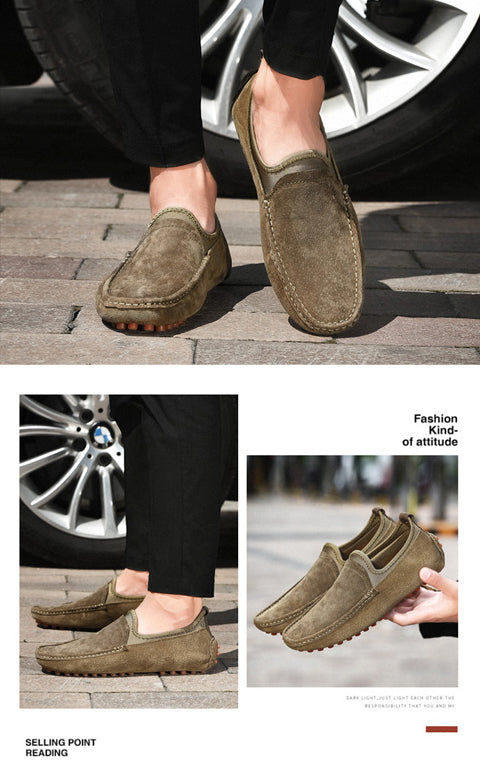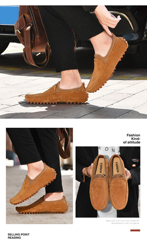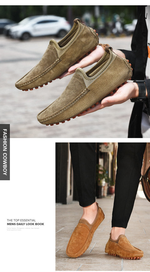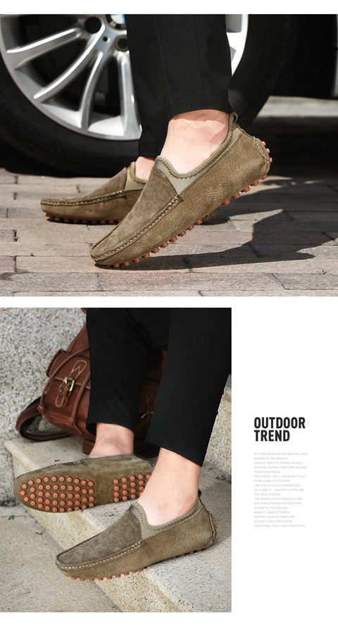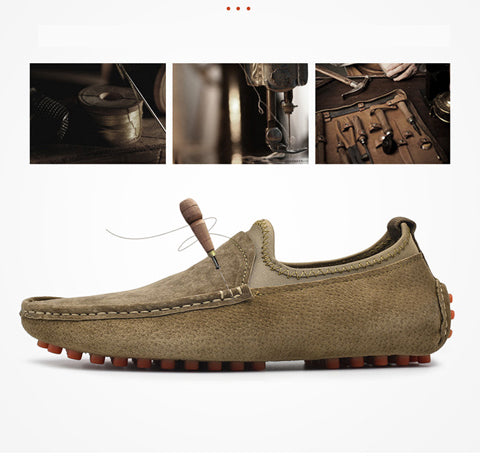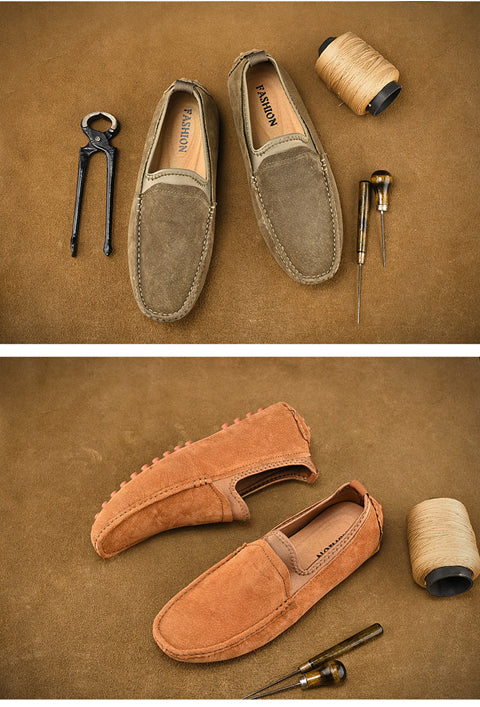 Men's Handmade Driving Shoes Walking Slip On Loafers Lightweight Comfortable Beans Shoes Fashion Slipper
