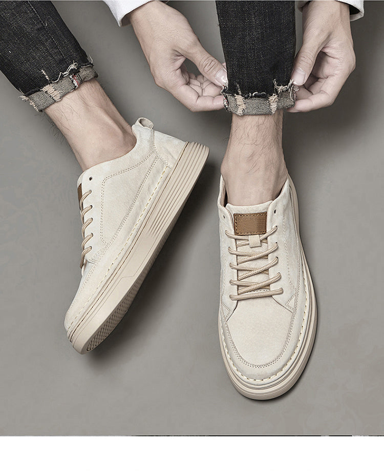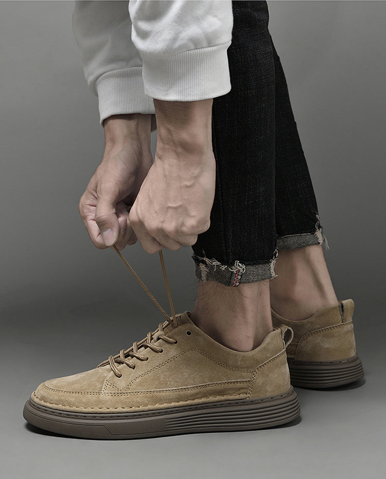 Men's Lace Up Casual Board Shoes Leather Business Comfortable Breathable Handmade Fashion