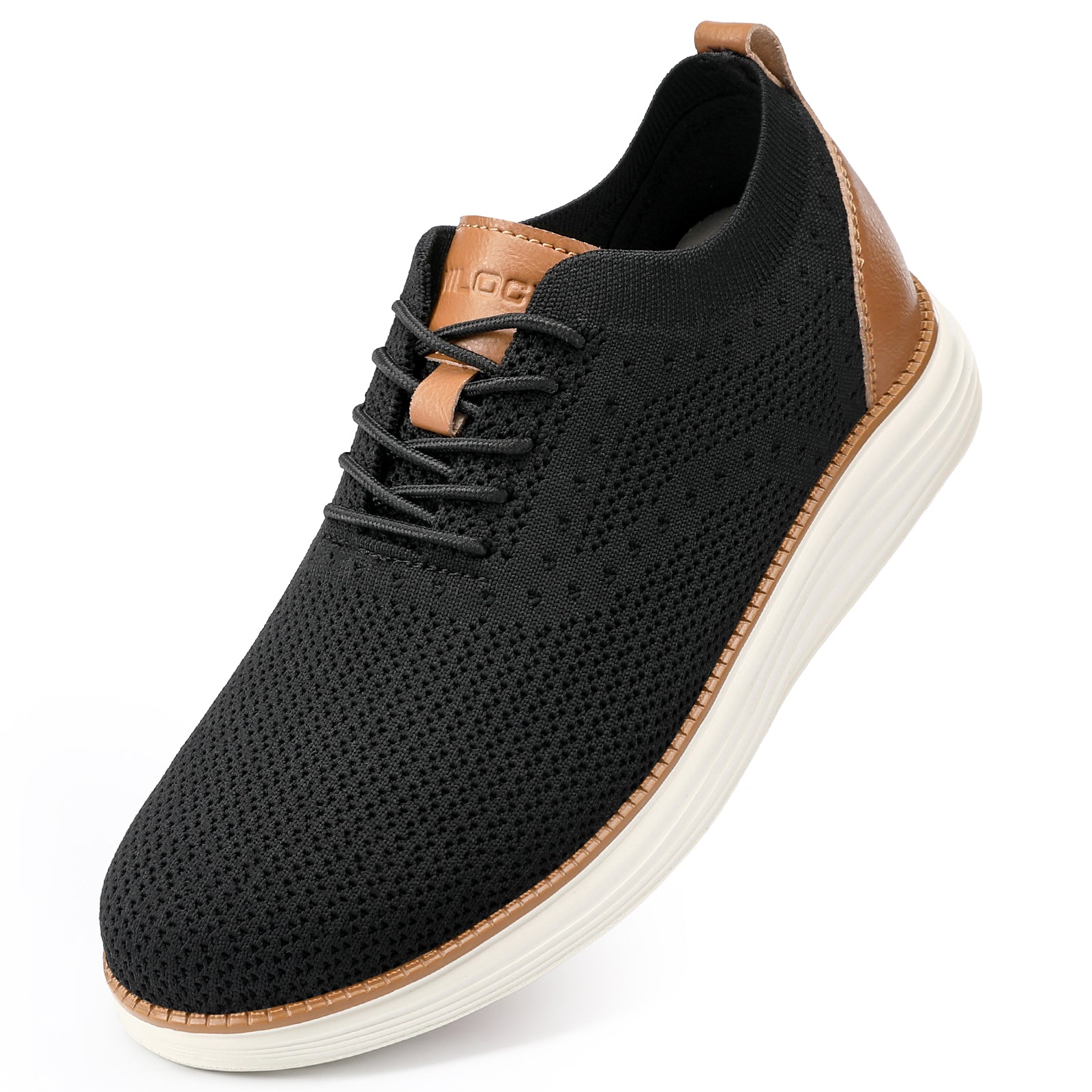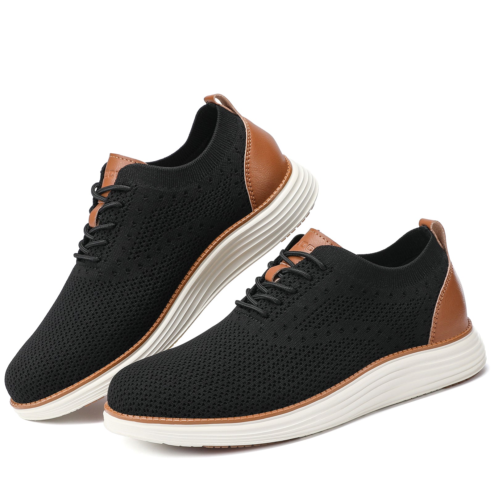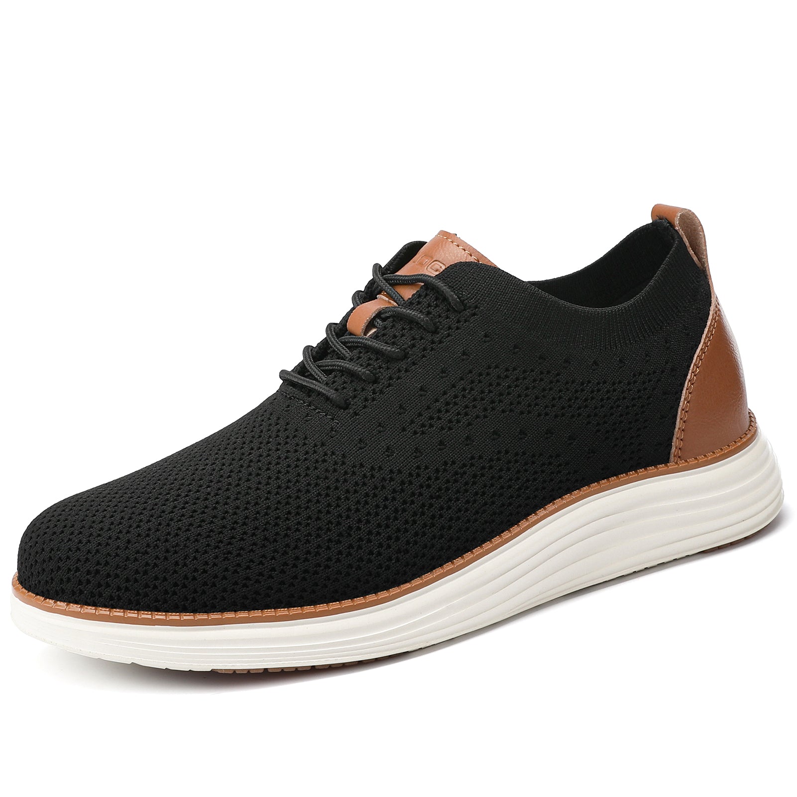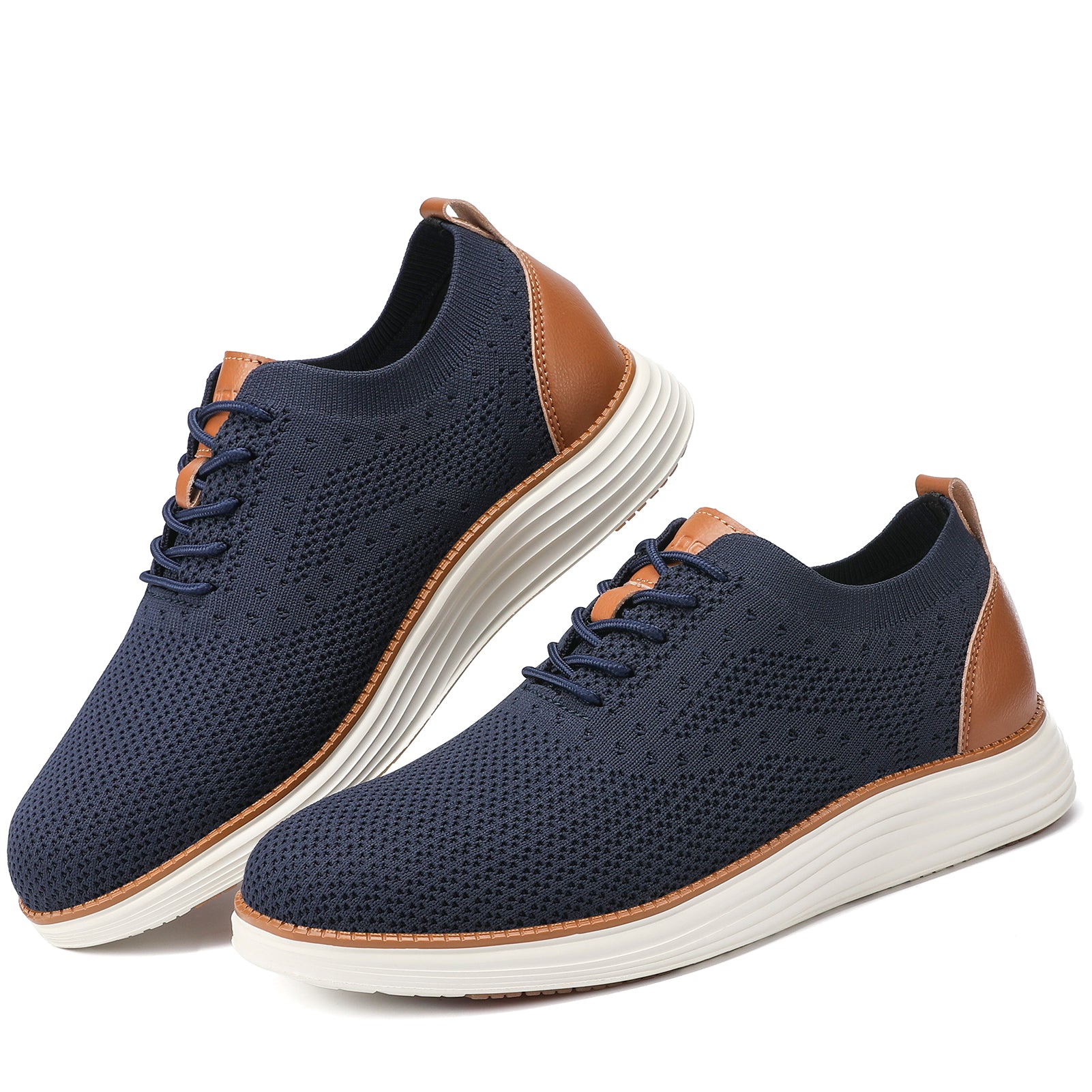 - Breathable stretchy knitted fabric upper allows your feet to stretch and breathe freely,match with leather hits on heel and tongue make mens dress sneaker more fashionable.