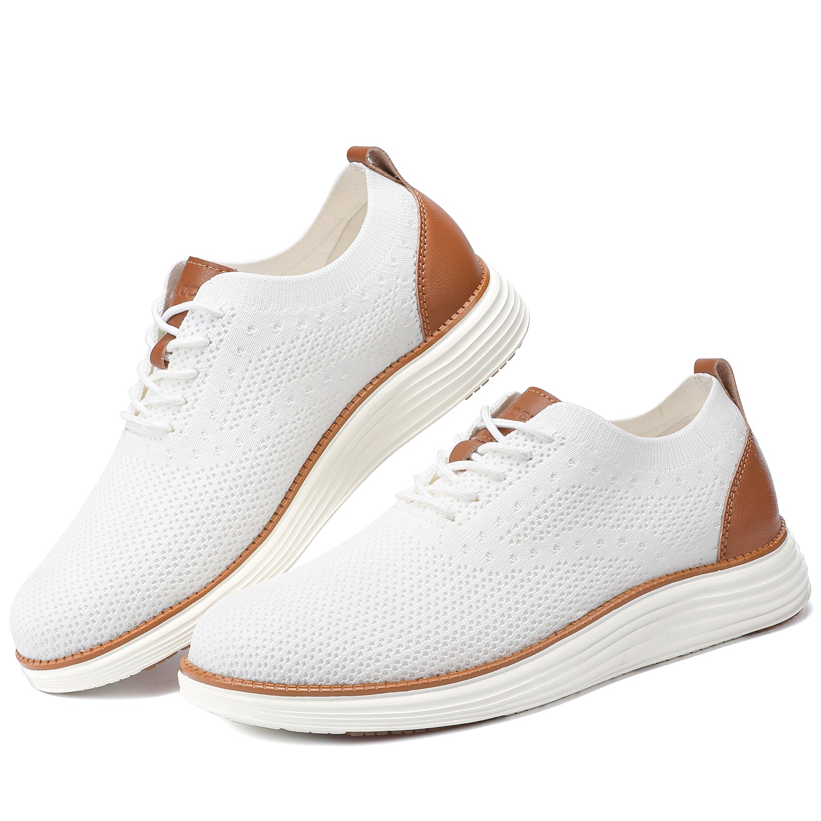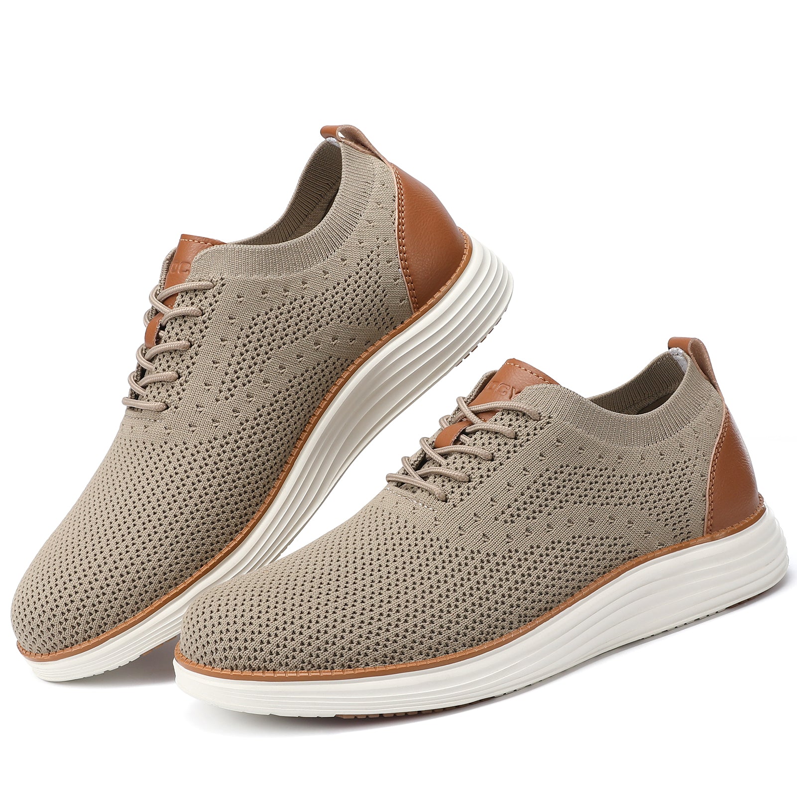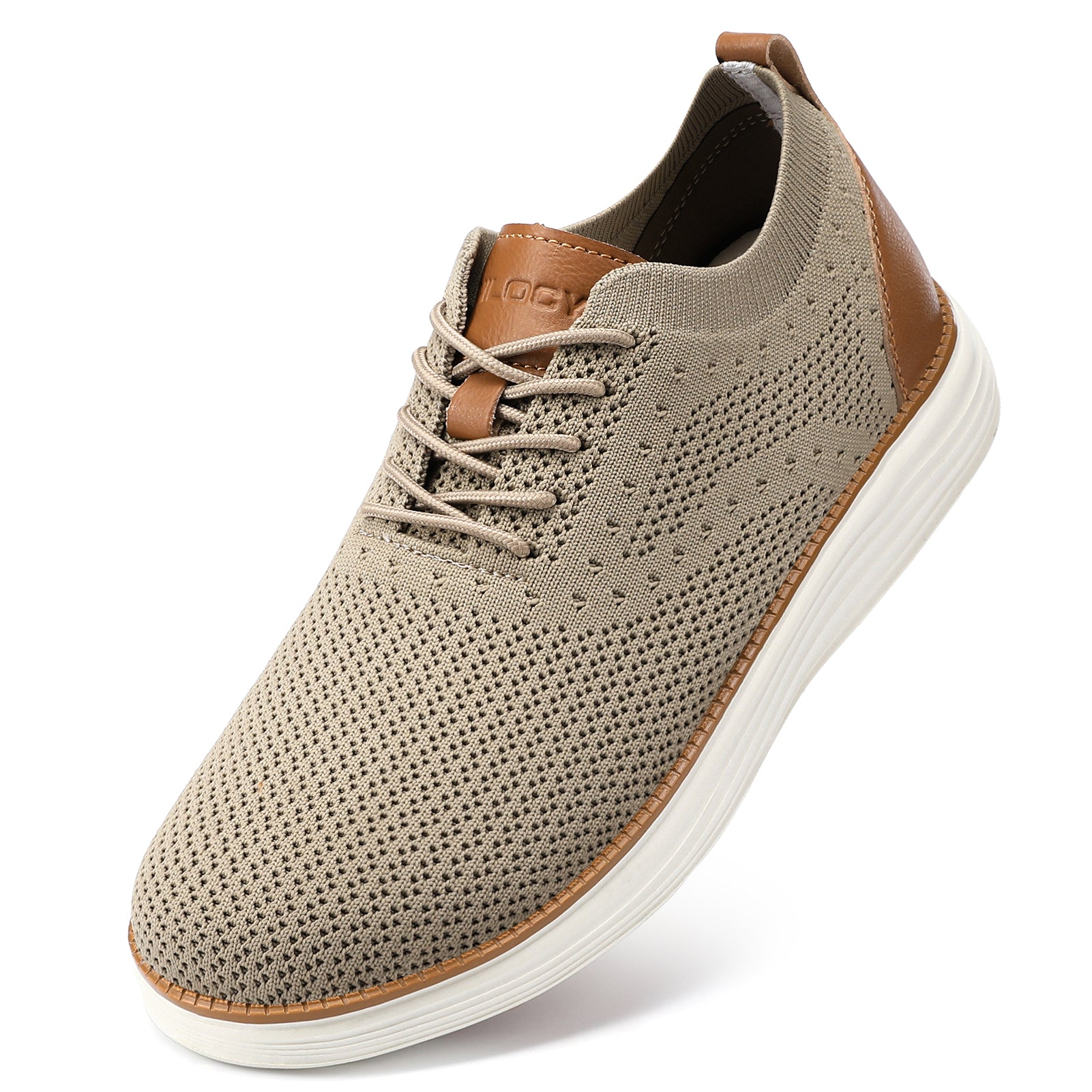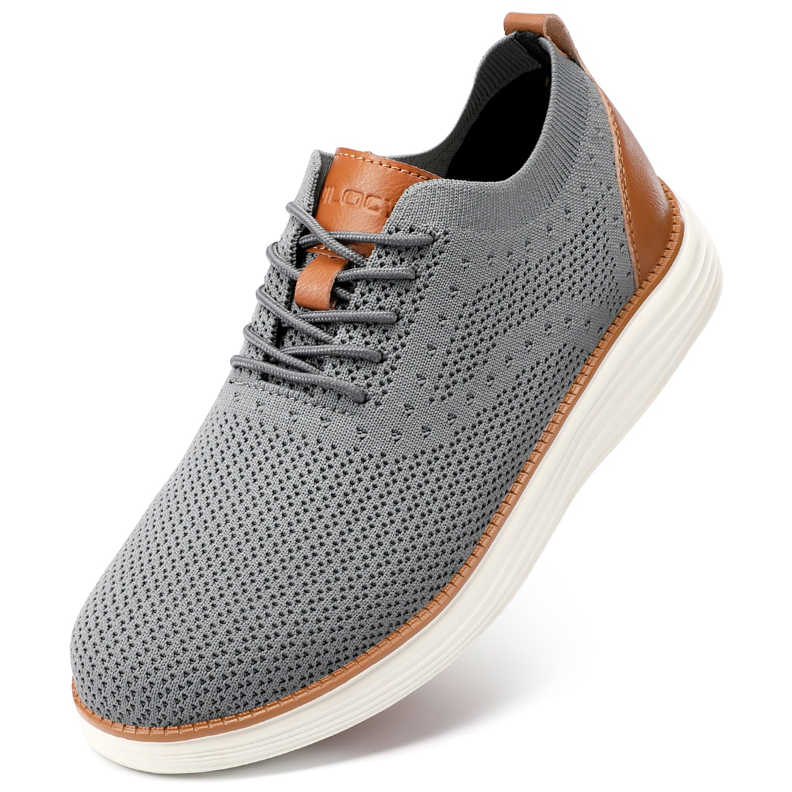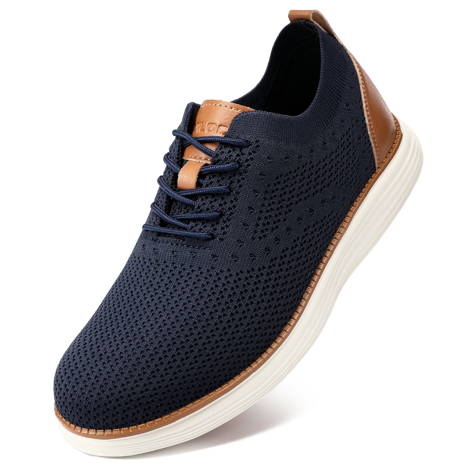 - Breathable stretchy knitted fabric upper allows your feet to stretch and breathe freely,match with leather hits on heel and tongue make mens dress sneaker more fashionable.